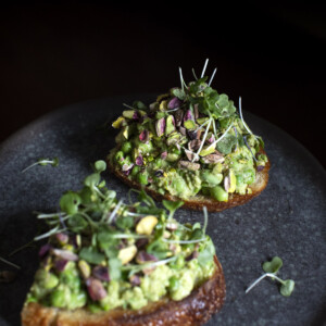 This Avocado Toast is such an easy, delicious snack or meal that comes together before you know it! The mashed avocado has a texture and protein upgrade with the addition of tender shelled edamame and English peas. Then crunchy, chopped pistachios and nutrient-rich microgreens sprinkled over top bring the total protein for this recipe up to 56 g. Thick slices of tangy sourdough bread are pan-fried until crispy, mounded high with the avocado mixture, and garnished with pistachios, microgreens, fresh lemon zest and juice, and flaky salt. After a few simple steps, you’re left with the tastiest avocado toast you’ve ever had!