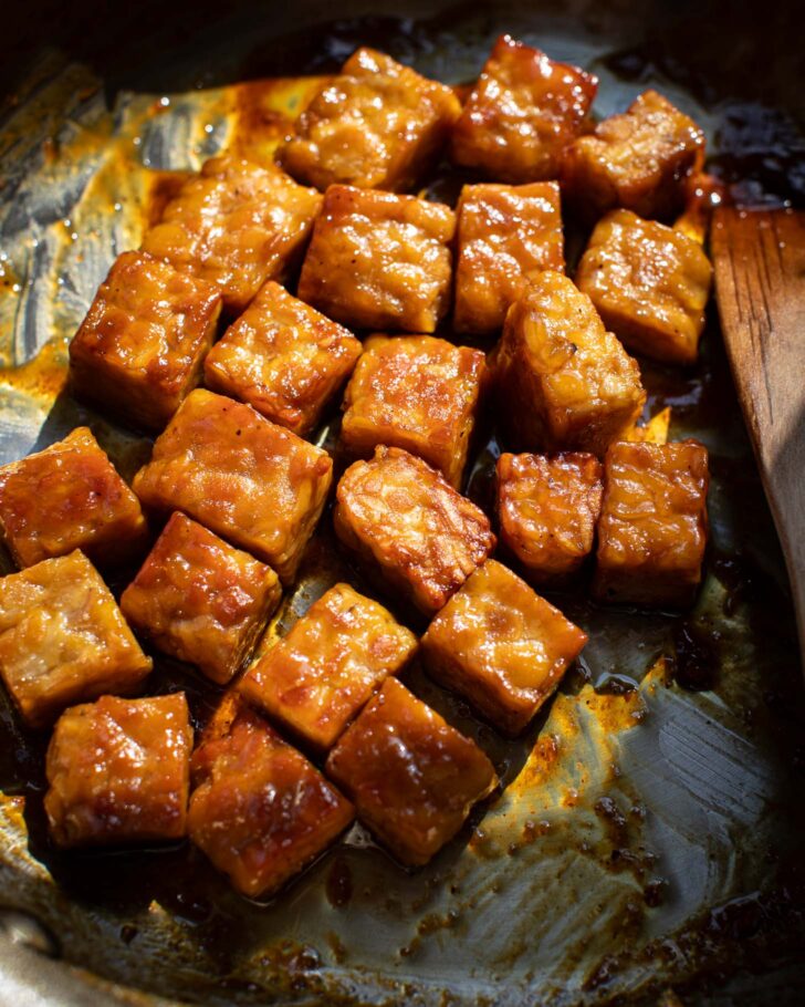 - Browning the tempeh and giving it some color helps to bring out its nutty flavor making it taste scrumptious.